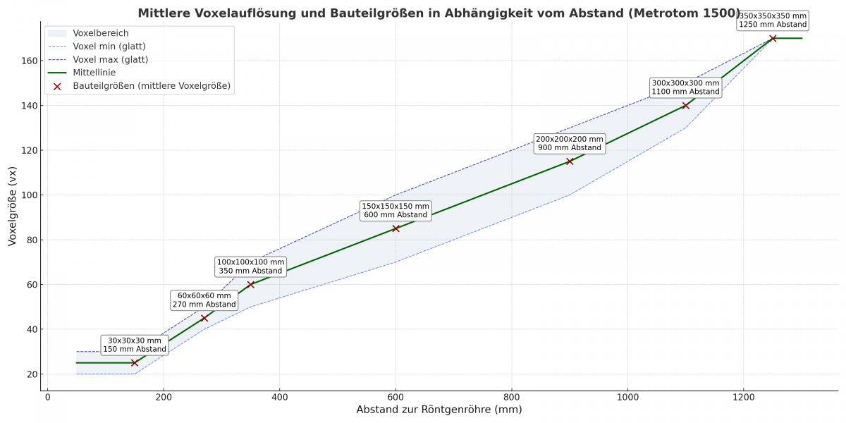 - Bauteilgröße und -komplexität: Besonders große oder komplex geformte Bauteile erfordern spezielle Einstellungen und verlängern die Analysezeit.