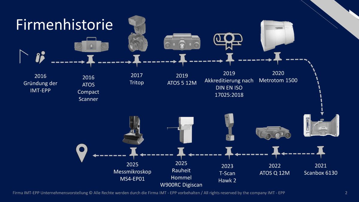 Unsere Reise startete im Gründungsjahr mit dem Erwerb des ATOS Compact Scan durch Paul Epp. Über die Jahre hinweg haben wir unser Portfolio an Messsystemen kontinuierlich erweitert und damit neue Möglichkeiten geschaffen.